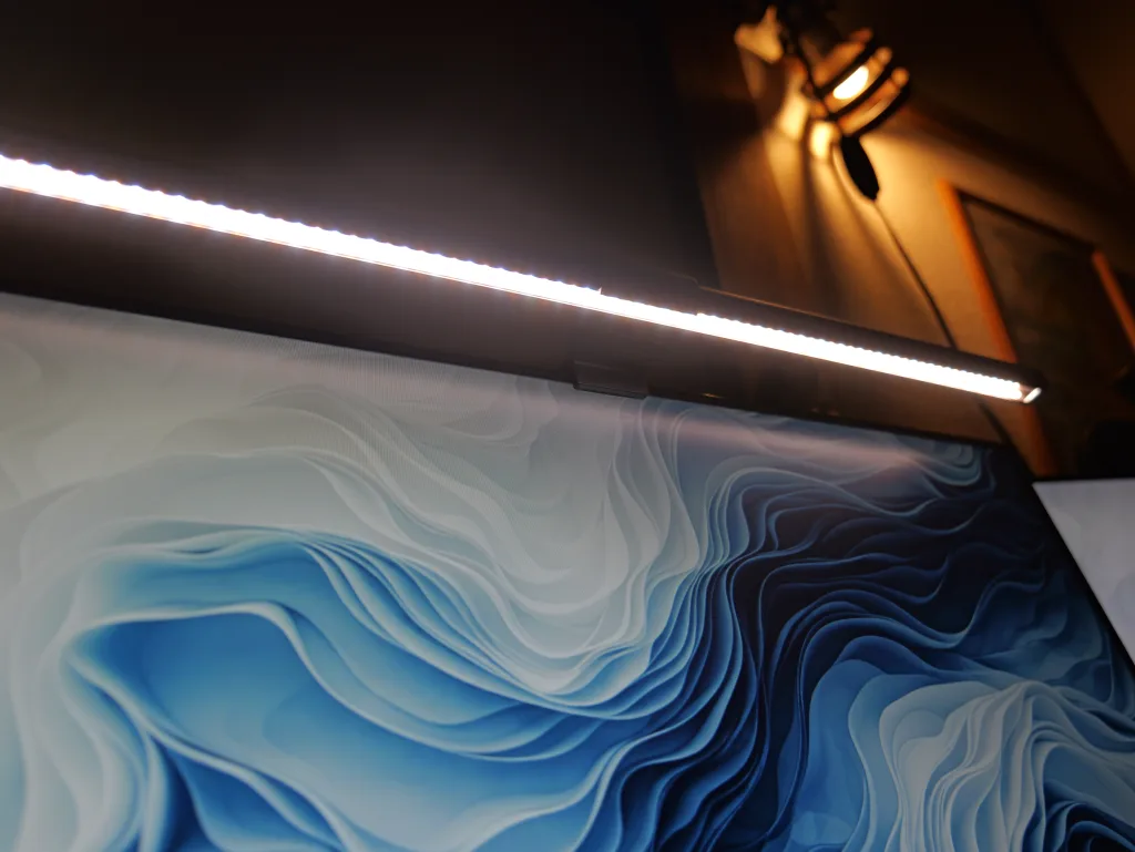 モニターライトはモニターの手前を照らす設計になっているので、モニター画面に光が反射しない。